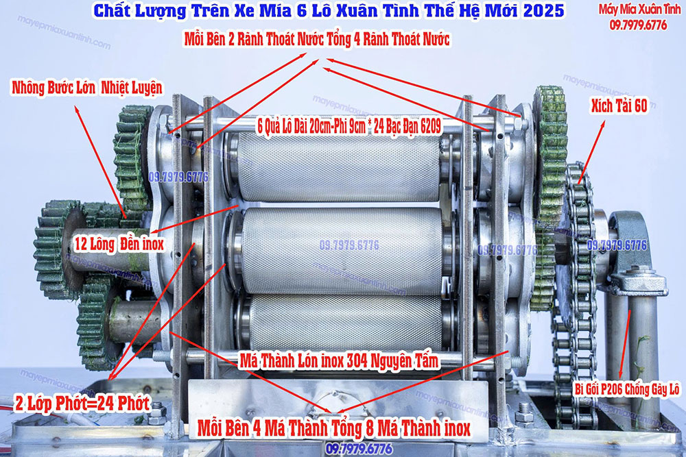 Cấu Tạo Của Xe Nước Mía 6 Lô Lục Giác Công Nghiệp Bản Đặc Biệt Xuân Tình.