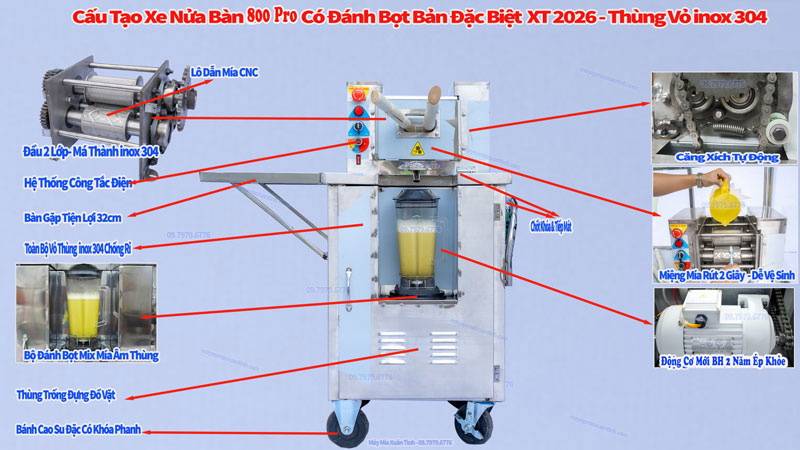 Những Nâng cấp Promax Trên Các Xe Mía Phổ Thông inox 304 Xuân Tình
