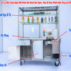 - Kích thước lớn cảm thấy chiếc xe bề thế hơn dài cao rộng hơn xe 1 mét với tủ kính 2 tầng 3 mặt tha hồ bạn bán kèm nhiều món ngoài nước mía.